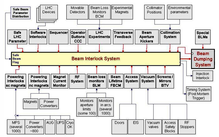 Cuando el LHC (Gran Colisionador de Hadrones, por sus siglas en inglés) del CERN esté completamente operacional, acelerará en un conteo circular protones a energías de 7 TeV, la partícula de energía más alta jamás alcanzada por ingenio humano. Para los estándares macroscópicos, 7 TeV (1*10E-6) es muy pequeño, pero cada haz producido, podría incluir en última instancia, cerca de 3*10E14 protones, de ir mal, podrían dañar seriamente el LHC y los delicados detectores de partículas que el acelerador hospeda. Por esta razón, como se describe en la nueva publicación de Robert Appleby (Beam-related machine protection for the CERN Large Hadron Collider experiments) y sus colaboradores del CERN, el LCH incluye un elaborado sistema de seguridad que regula los haces, los monitorea, y los deposita fuera de zonas de peligro, si es que estos pierden su curso. Para darnos una idea de lo complejo que es este sistema, los autores señalan que 17 subsistemas distintos deben emitir de manera continua un “OK” virtual al procesador central o el haz será depositado fuera del sistema., Además de describir los sistemas de seguridad, Appleby y su equipo calculan como los haces podrían responder a varios posibles accidentes (una inapropiada configuración del campo magnético, por ejemplo) y se preguntan si el sistema de protección podría responder de forma rápida y precisa para evitar el desastre. Aunque bien sabemos, que ningún sistema puede proteger contra todas las fallas, los investigadores concluyen que el acelerador y sus detectores asociados son tan seguros como razonablemente podría esperarse. Aunado a los estudios simulados, los científicos están evaluando el sitema de protección con haces de 3.5 TeV los cuales están incrementando gradualmente su intensidad.